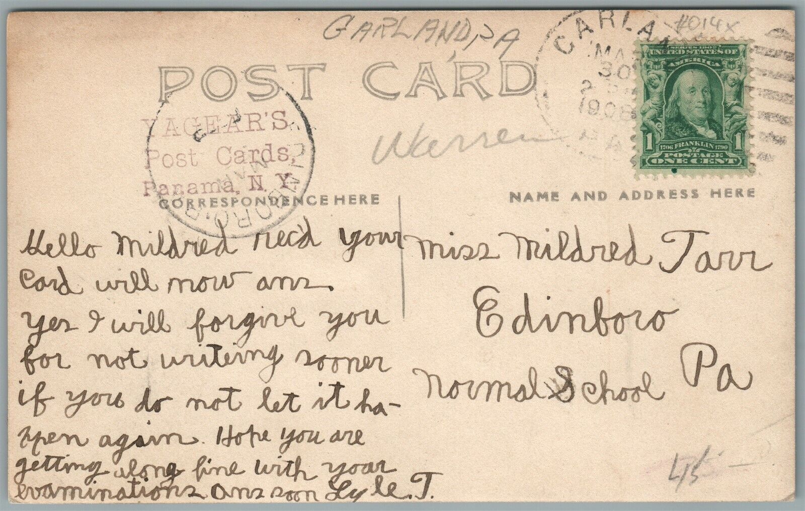 GARLAND PA STREET SCENE ANTIQUE REAL PHOTO POSTCARD RPPC