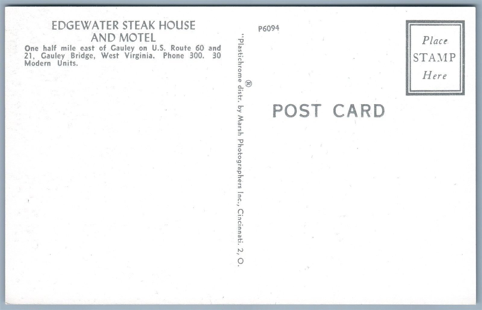 GAS STATION EDGEWATER STEAK HOUSE & MOTEL W.Va VINTAGE POSTCARD
