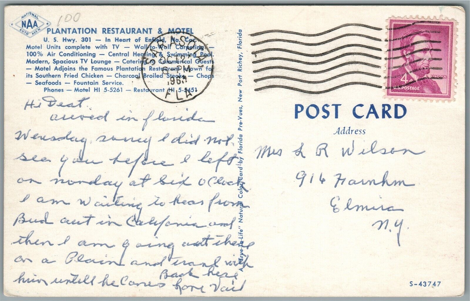 GAS STATION PLANTATION RESTAURANT & HOTEL FLORIDA VINTAGE POSTCARD