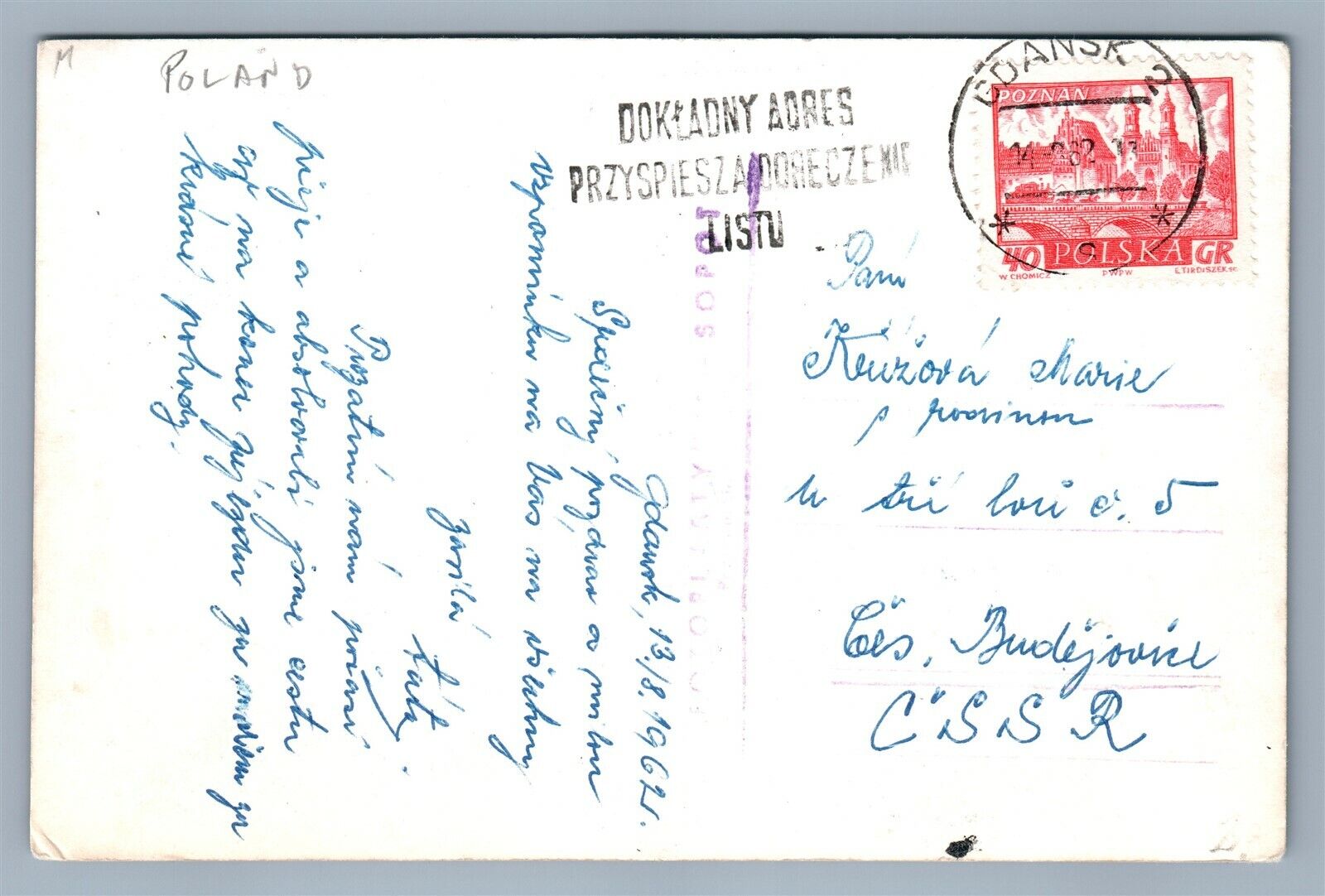 GDANSK POLAND UL. DLUGI TARG VINTAGE REAL PHOTO POSTCARD RPPC w/ STAMP