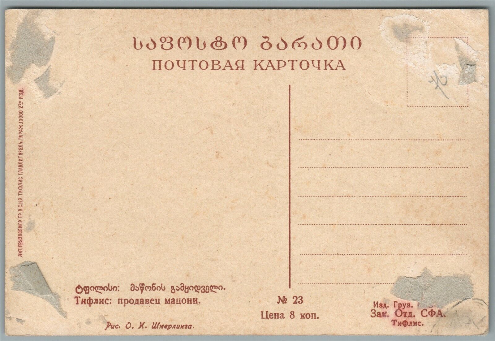GEORGIA TIFLIS CAUCASUS CHEESE VENDOR ARTIST SIGNED ANTIQUE RUSSIAN POSTCARD