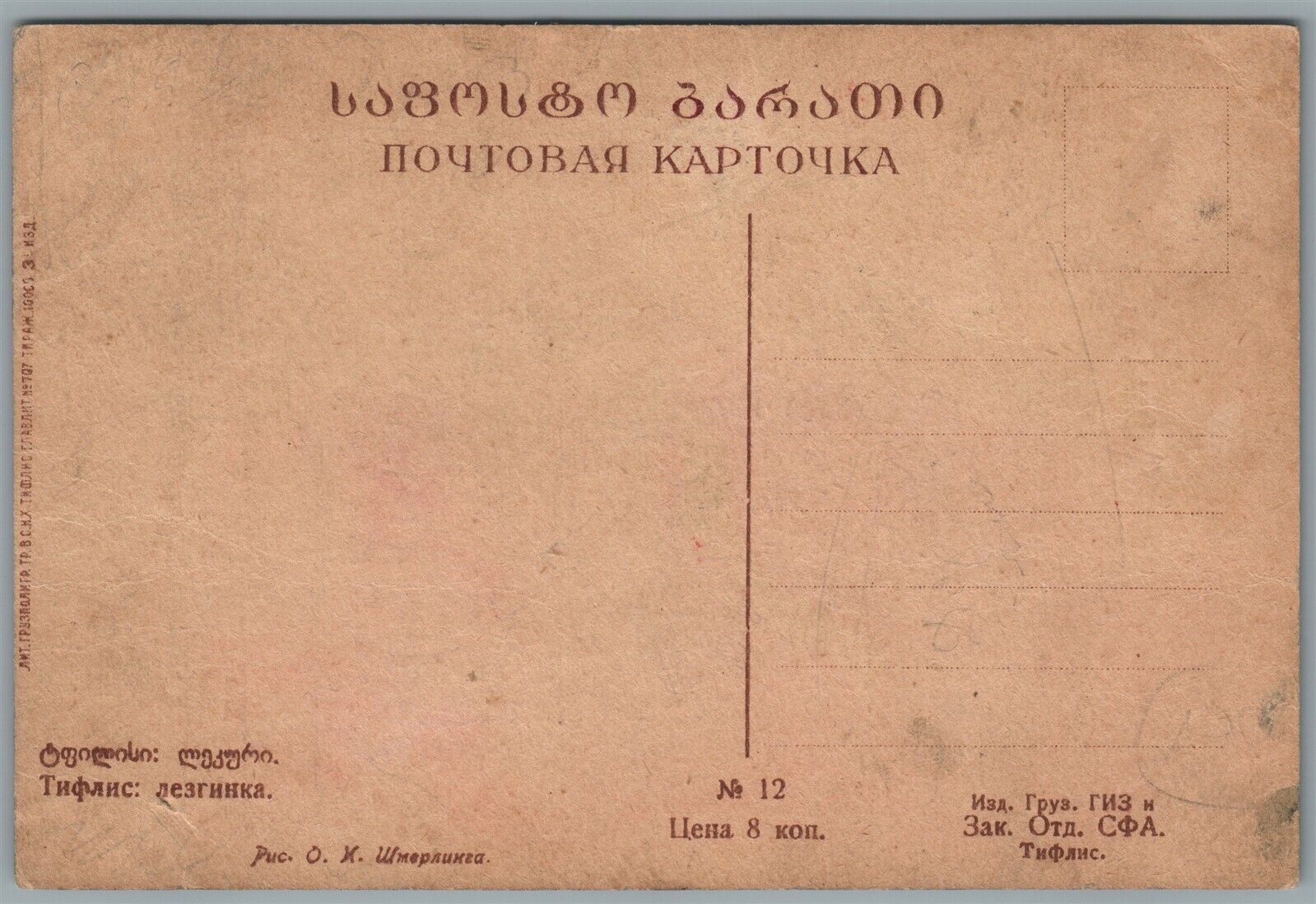 GEORGIA TIFLIS CAUCASUS LEZGINKA DANCING SIGNED ANTIQUE RUSSIAN POSTCARD