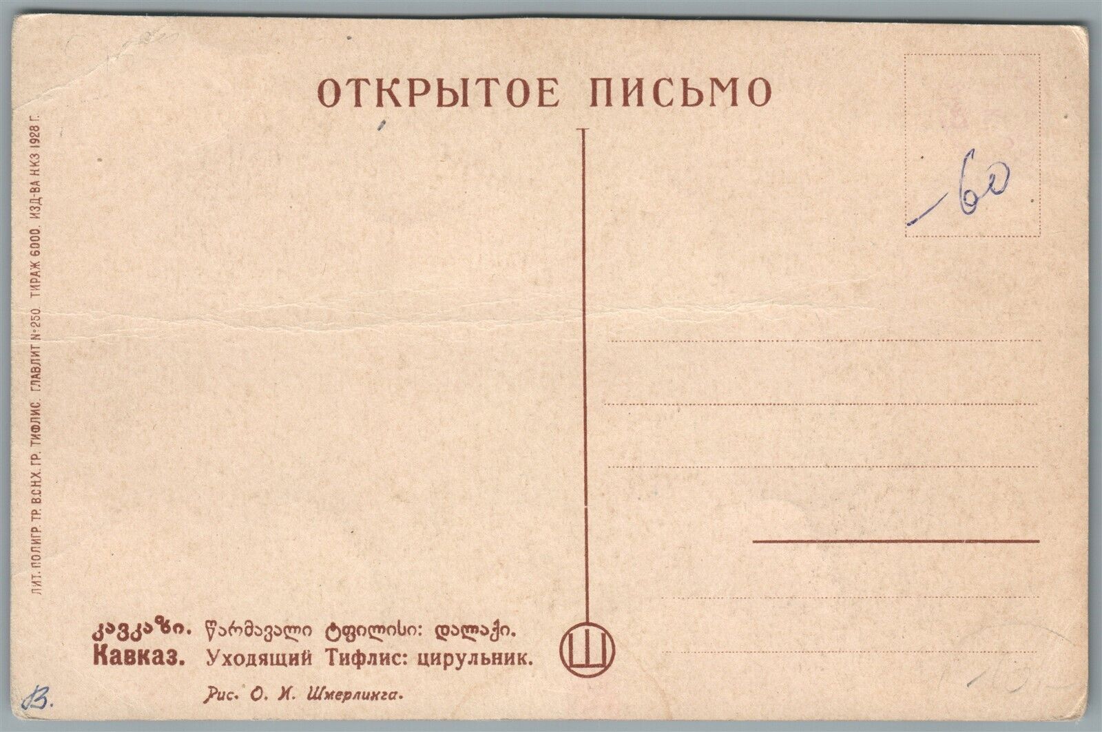 GEORGIA TIFLIS CAUCASUS THE HAIRDRESSER SIGNED ANTIQUE RUSSIAN POSTCARD