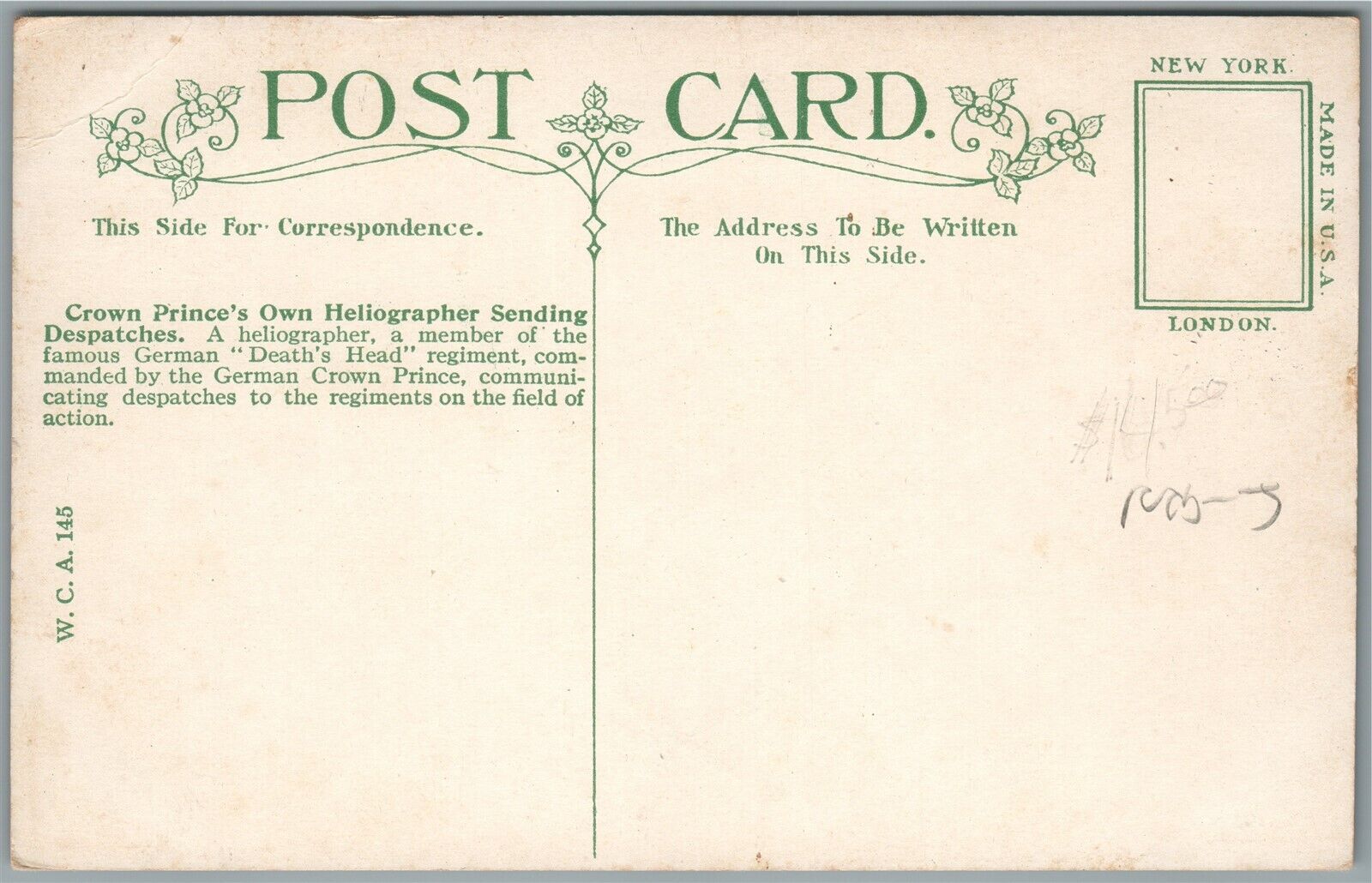 GERMAN CROWN PRINCE HELIOGRAPHER DEATH'S HEAD REGIMENT ANTIQUE POSTCARD