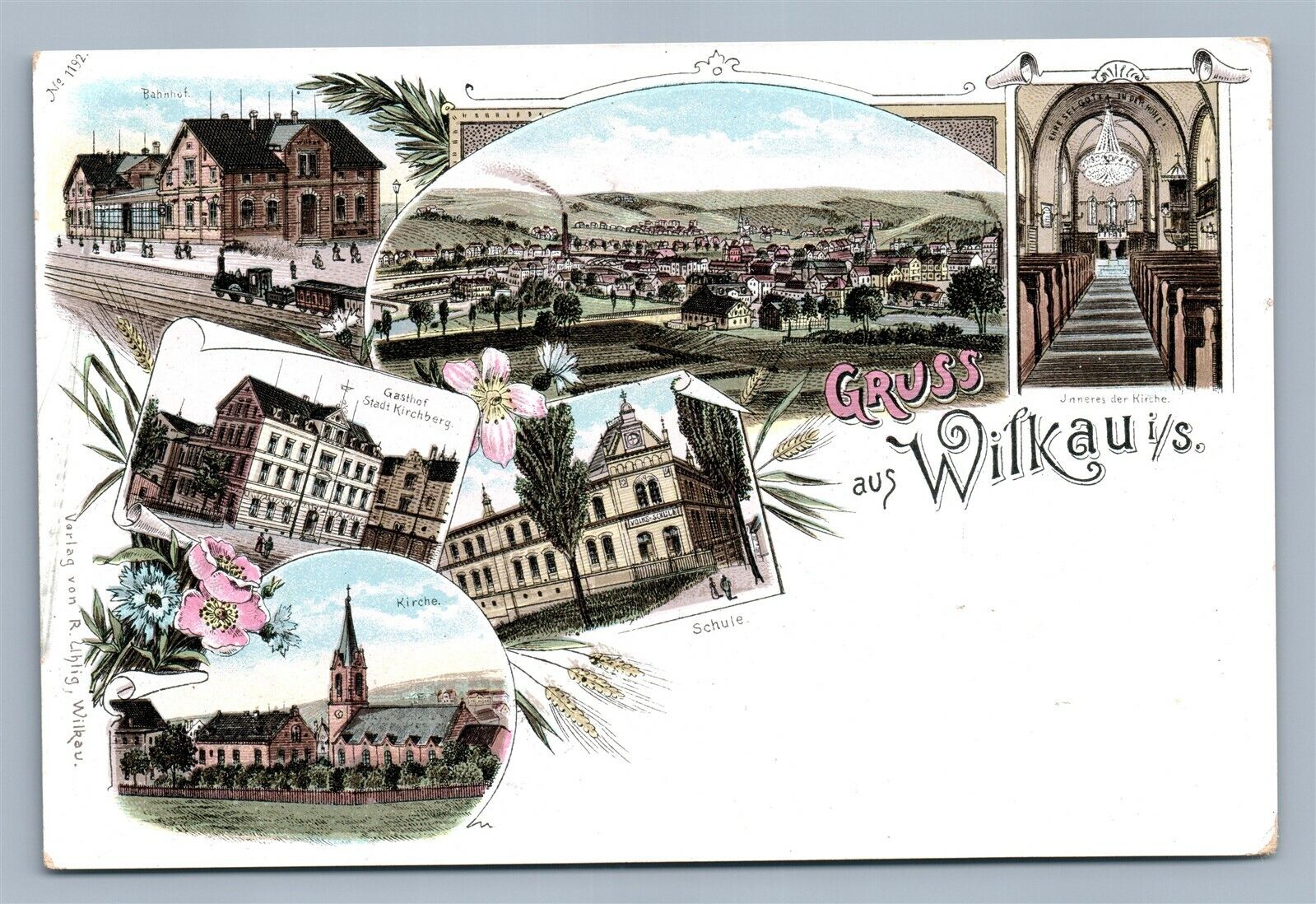 GERMAN GRUSS AUS WILKAU i/S ANTIQUE POSTCARD