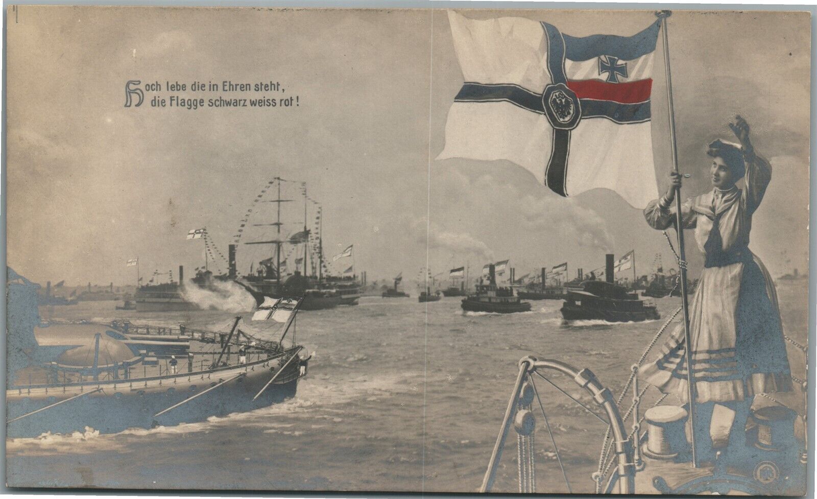 GERMAN PORT w/ SHIPS ANTIQUE REAL PHOTO POSTCARD RPPC w/ IMPERIAL FLAG