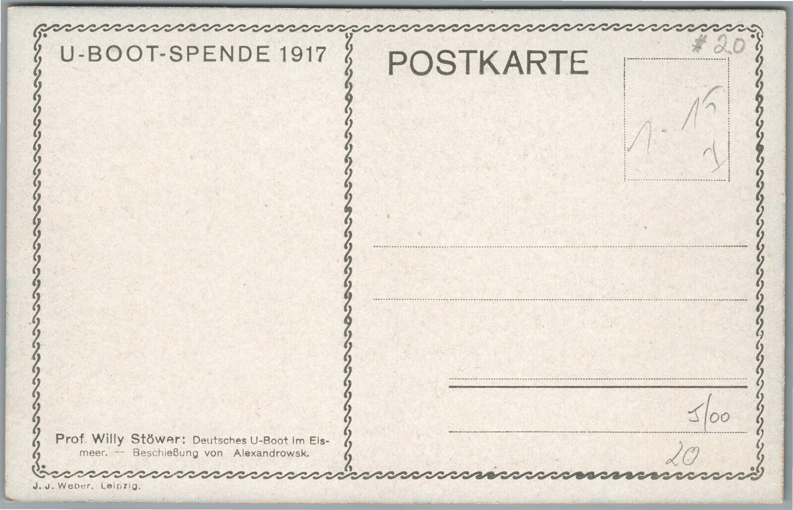 GERMAN SUBMARINE U-BOOT SPENDE 1917 ANTIQUE POSTCARD