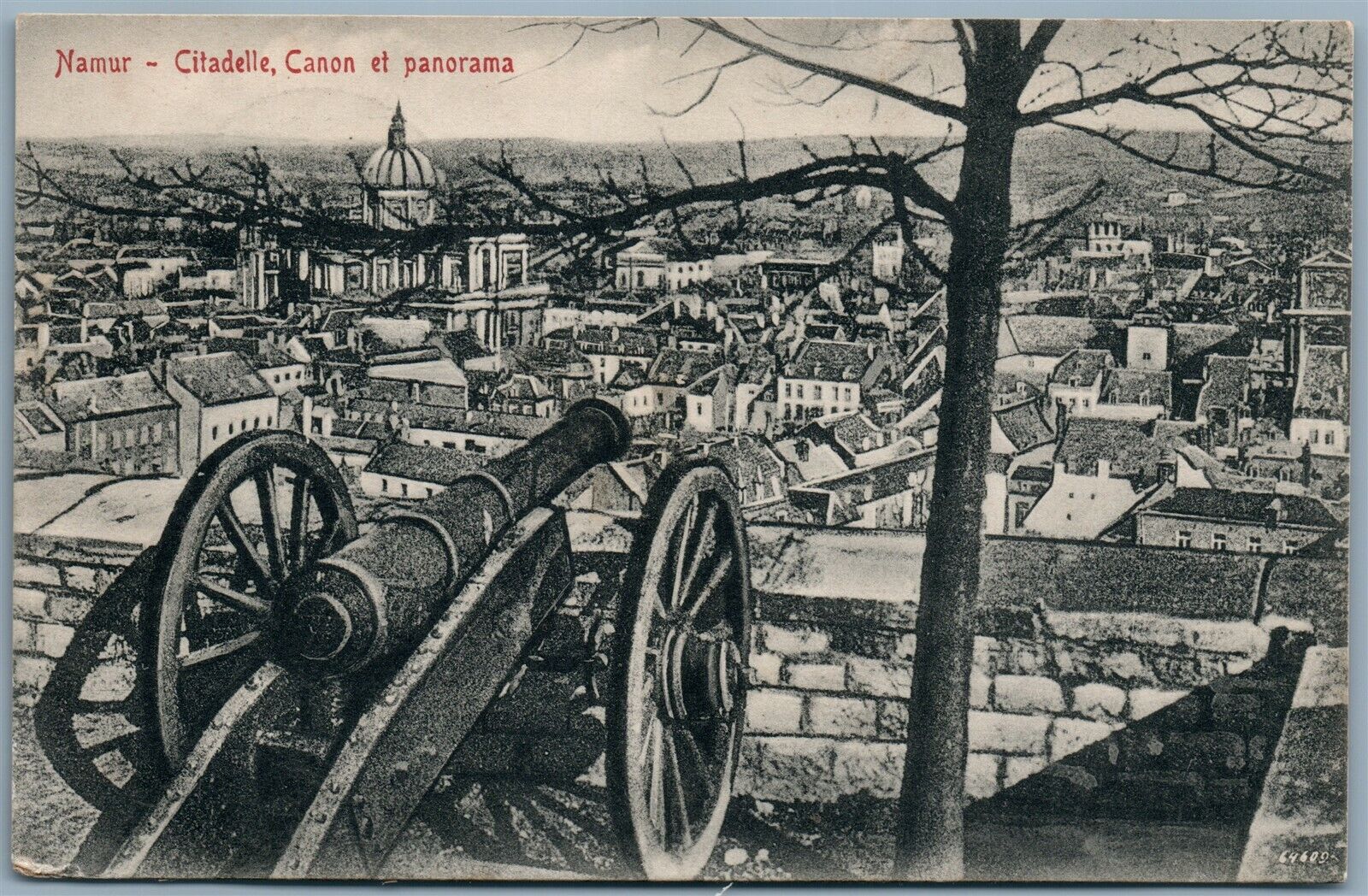 GERMAN WWI FELDPOST 1915 ANTIQUE POSTCARD PANORAMA w/ CANNON NAMUR FRANCE