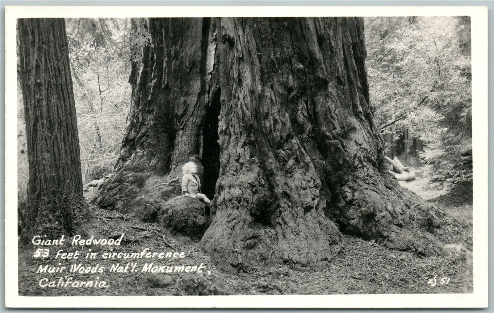 GIANT REDWOOD MUIR WOODS NAT'L MONUMENT CA ANTIQUE REAL PHOTO POSTCARD RPPC