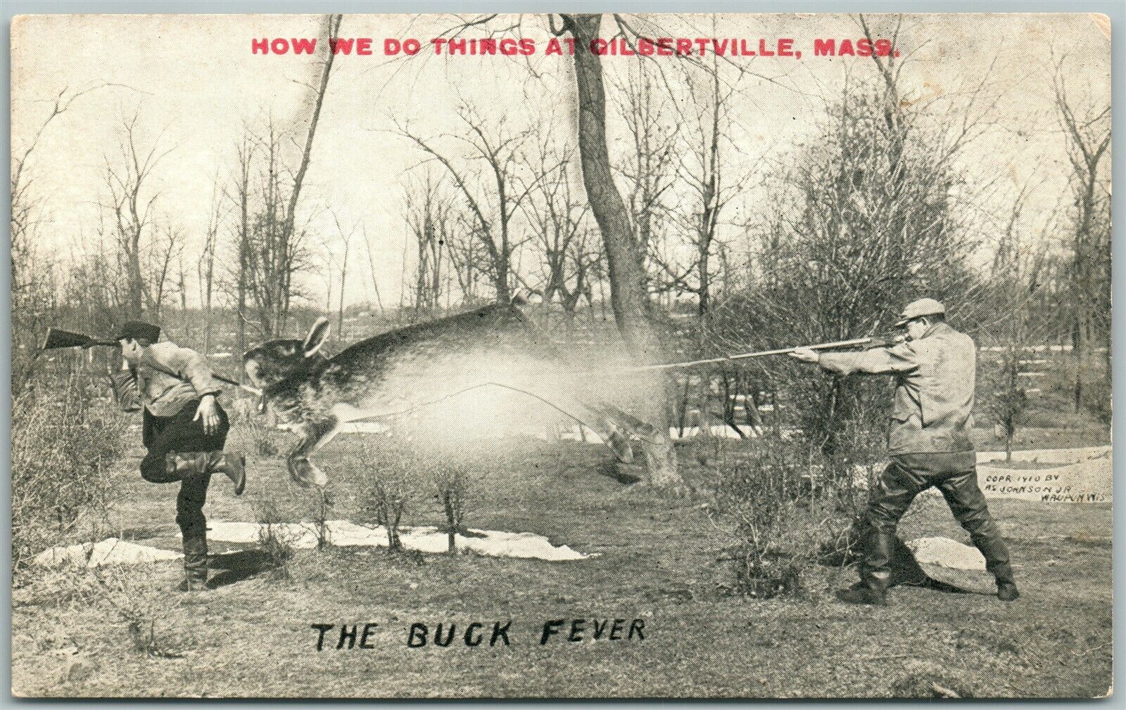 GILBERTVILLE MA HUNTING RABBIT EXAGGERATED ANTIQUE POSTCARD