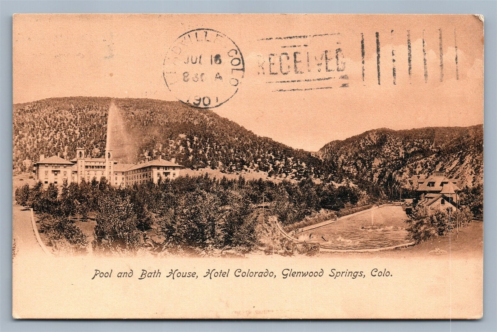 GLENWOOD SPRINGS CO HOTEL COLORADO SWIMMING POOL & BATH HOUSE ANTIQUE POSTCARD