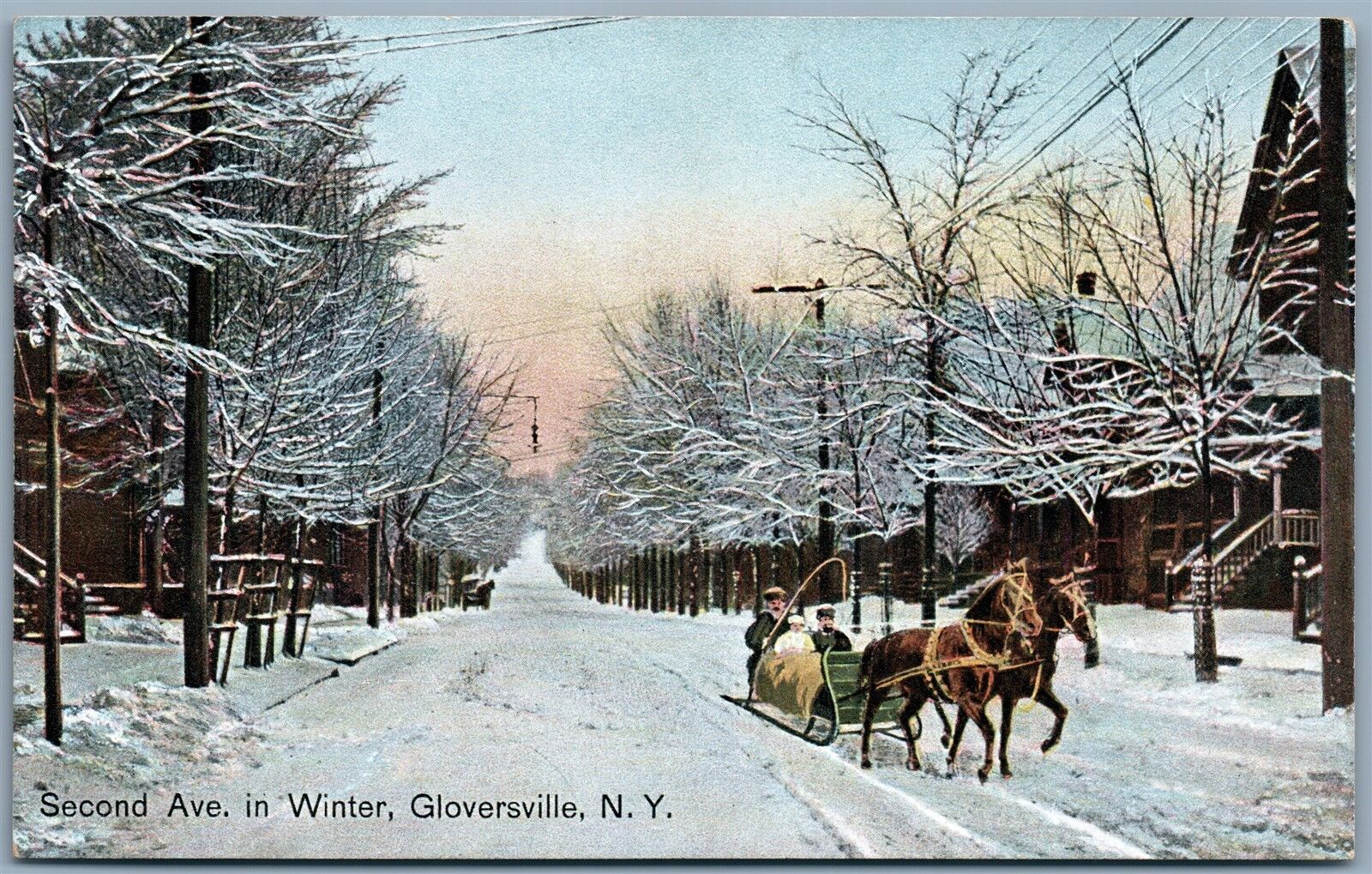 GLOVERSVILLE NY SECOND AVENUE ANTIQUE POSTCARD