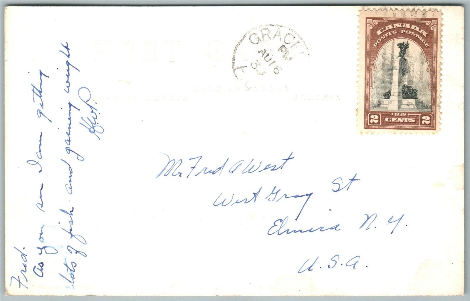 GRACEFIELD QUEBEC CANADA FISHING EXAGGERATED VINTAGE REAL PHOTO POSTCARD RPPC