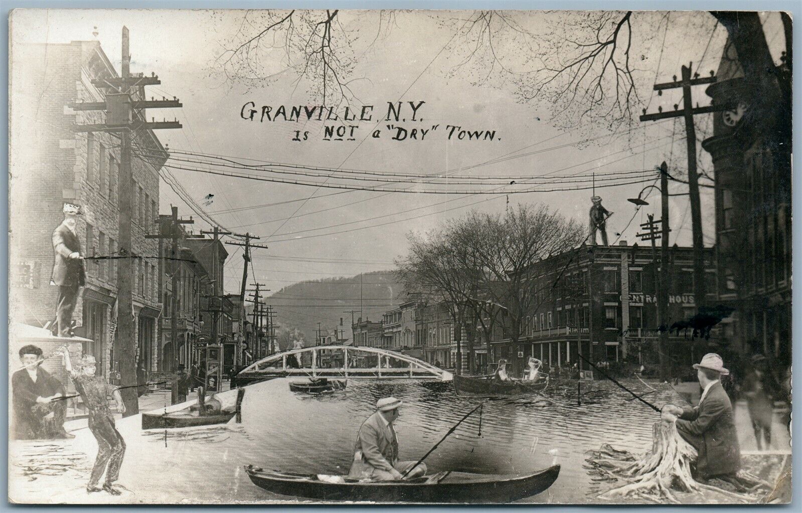 GRANVILLE N.Y. IS NOT A DRY TOWN ANTIQUE PHOTOMONTAGE REAL PHOTO RPPC FISHING