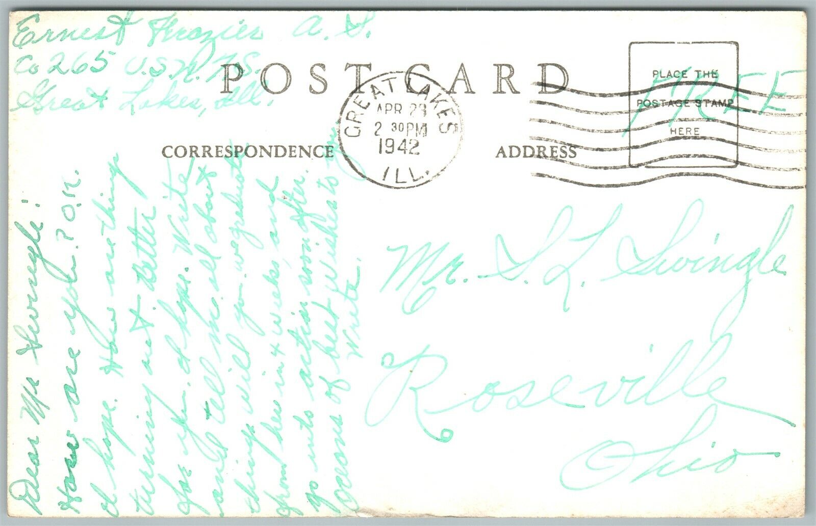 GREAT LAKES IL 1942 VINTAGE REAL PHOTO POSTCARD RPPC FLAG FORMATION by SAILORS