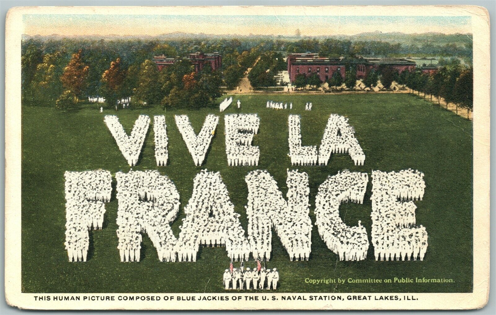 GREAT LAKES IL US NAVAL STATION HUMAN PICTURE VIVA LA FRANCE ANTIQUE POSTCARD