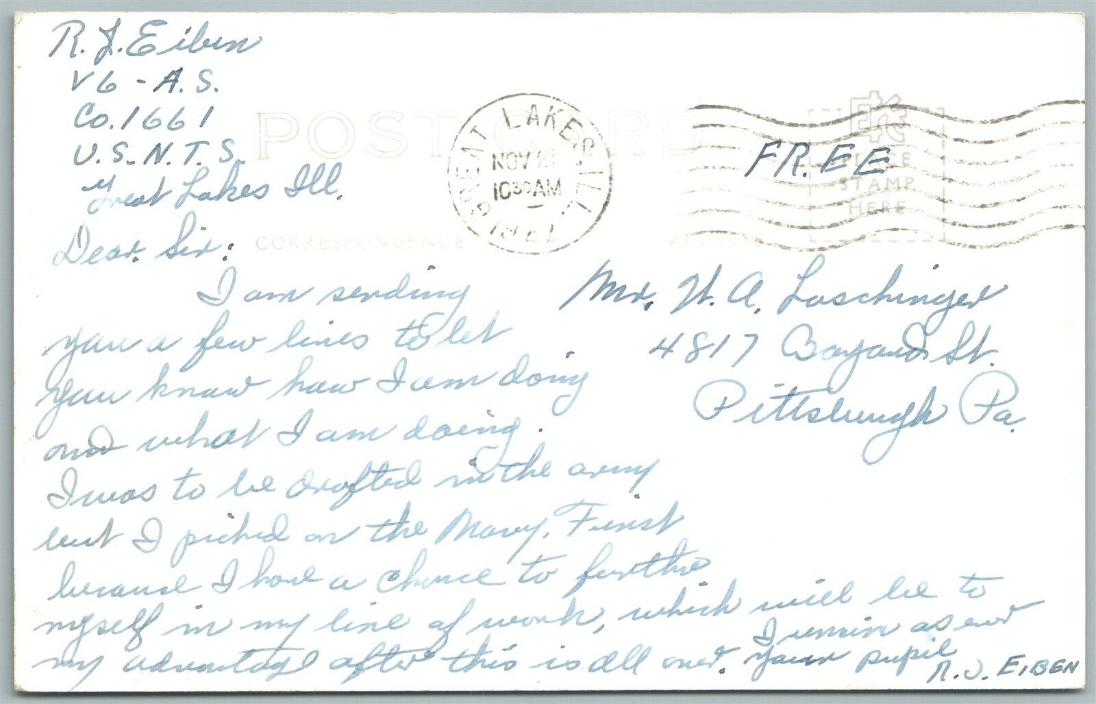 GREAT LAKES IL VINTAGE REAL PHOTO POSTCARD RPPC SAILORS LIVING AMERICAS SECURITY