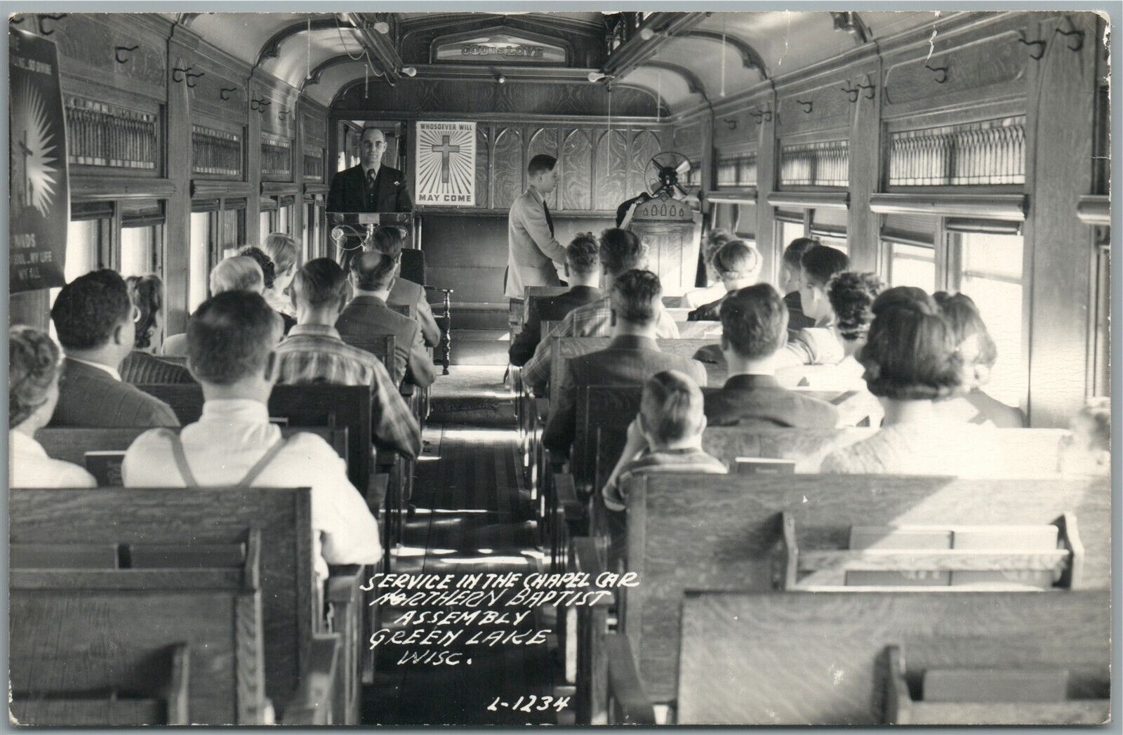 GREEN LAKE WI CHAPEL CAR SERVICE VINTAGE REAL PHOTO POSTCARD RPPC