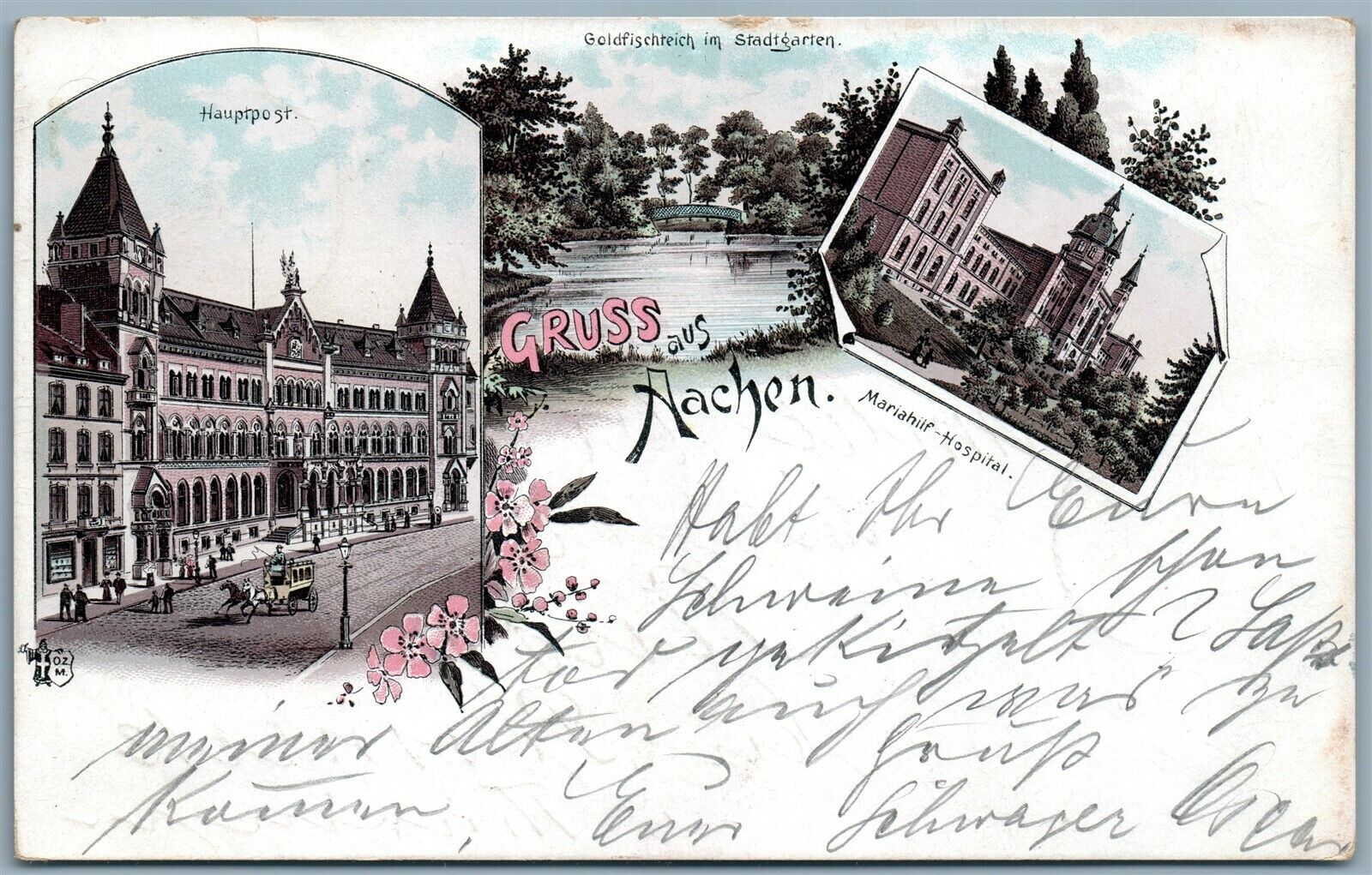 GRUSS AUS AACHEN GERMANY UNDIVIDED 1896 ANTIQUE POSTCARD