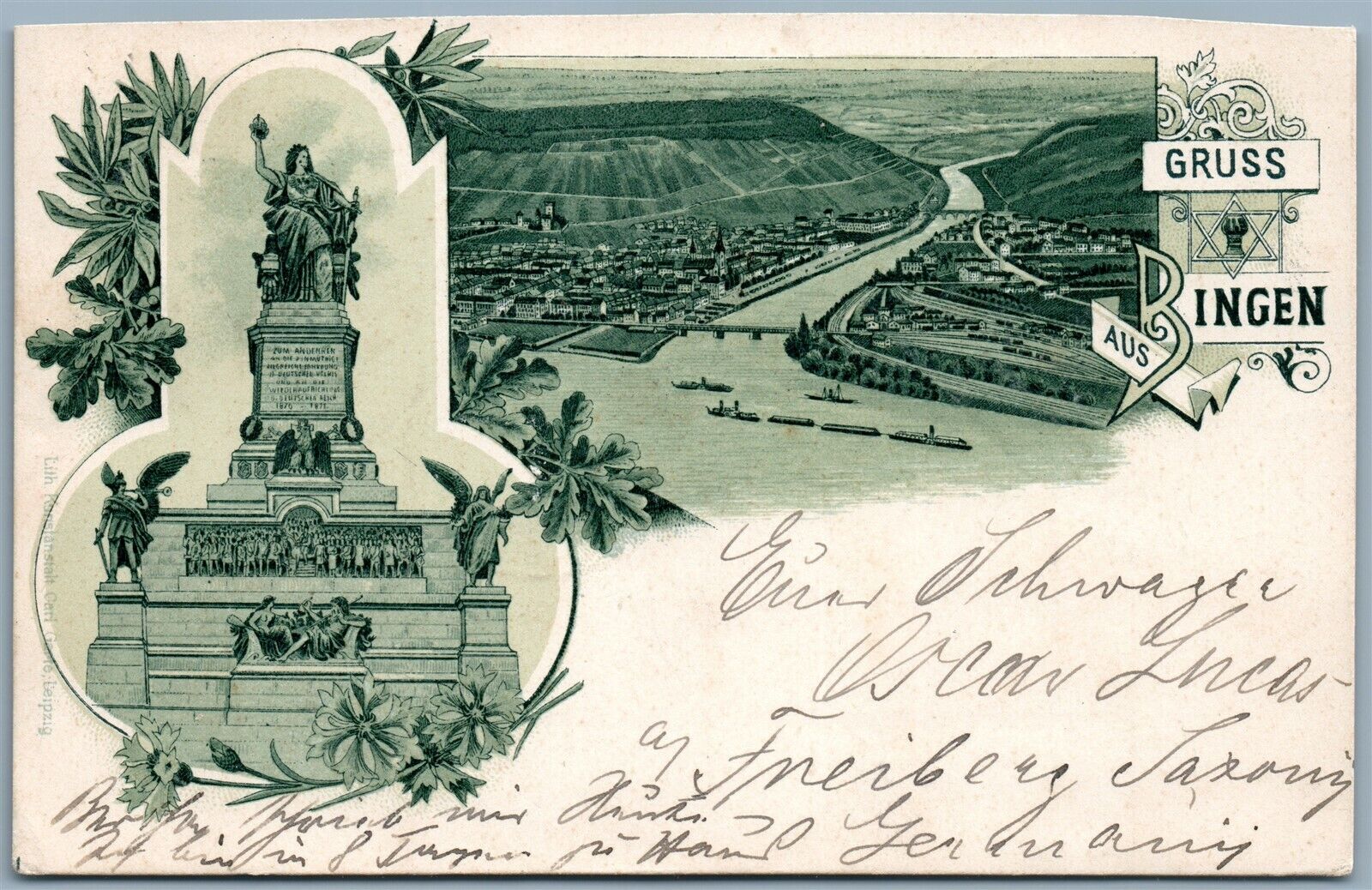 GRUSS AUS BINGEN GERMANY 1898 ANTIQUE POSTCARD