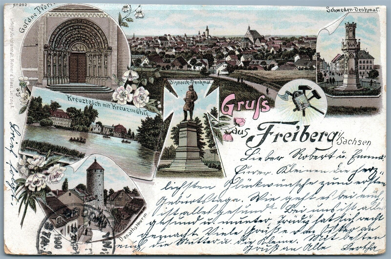 GRUSS AUS FREIBERG GERMANY 1900 ANTIQUE POSTCARD