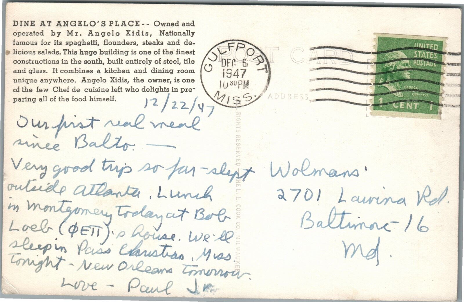 GULFPORT MS ANGELO'S PLACE RESTAURANT VINTAGE REAL PHOTO POSTCARD RPPC