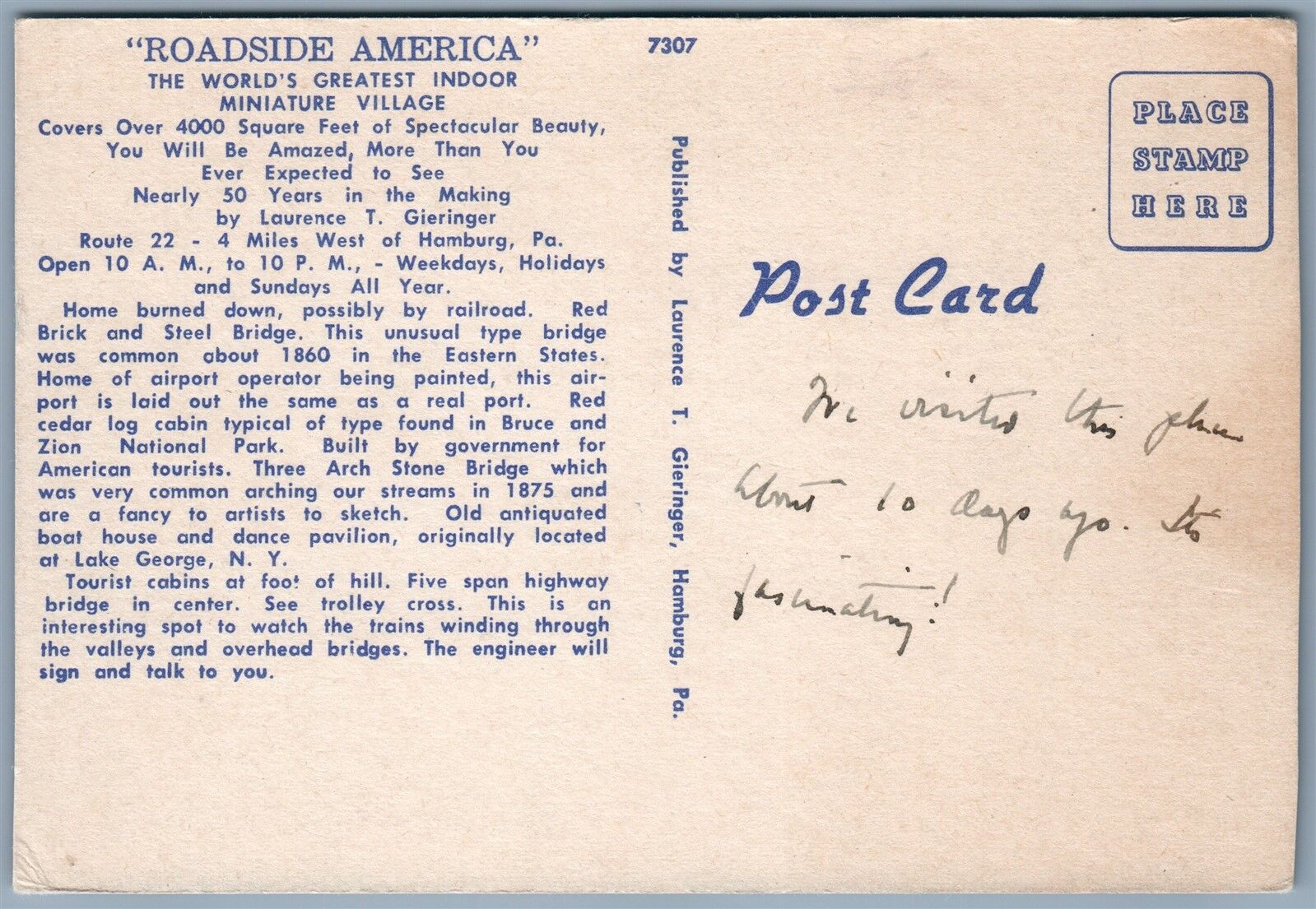 HAMBURG PA VINTAGE POSTCARD WORLD'S GREATEST INDOOR MINIATURE VILLAGE