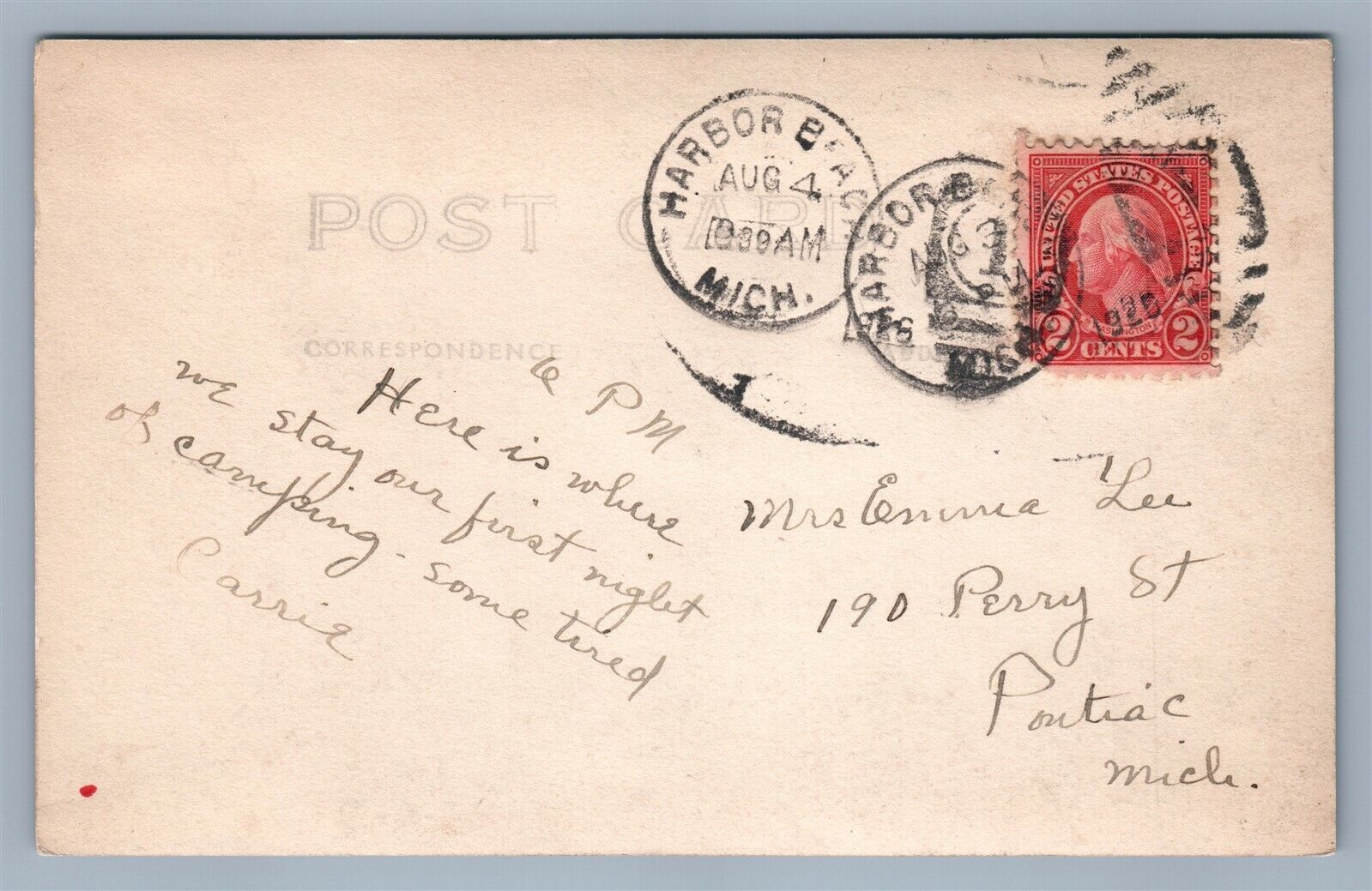 HARBOR BEACH MI LIGHT HOUSE ANTIQUE REAL PHOTO POSTCARD RPPC