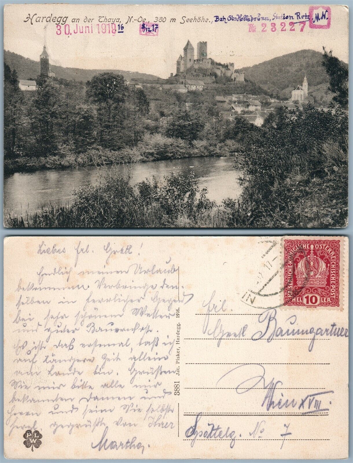 HARDEGG AN DER THAYA Hollabrunn AUSTRIA ANTIQUE POSTCARD w/ STAMP