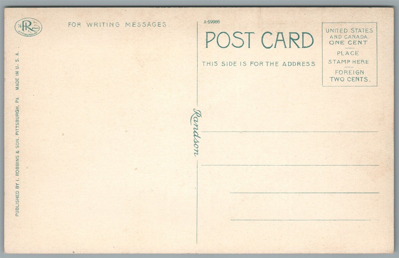 HARMONY PA RAPP'S HOMESTEAD ANTIQUE POSTCARD