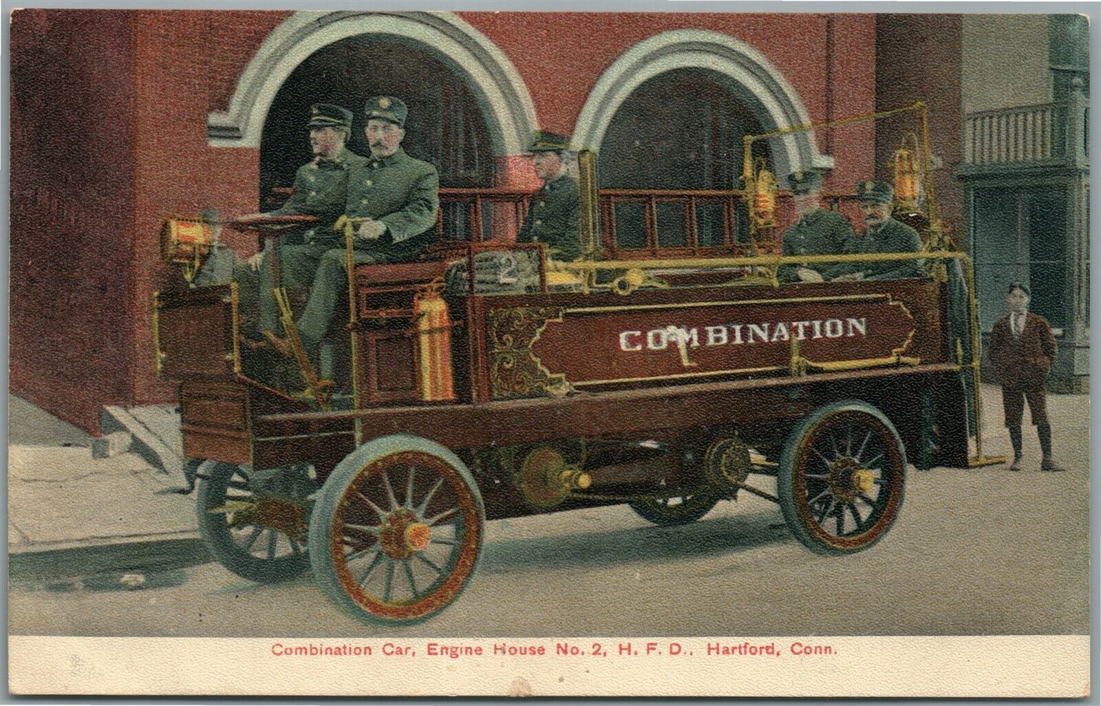 HARTFORD CT FIRE DEPARTMENT No. 2 engine house COMBINATION CAR ANTIQUE POSTCARD