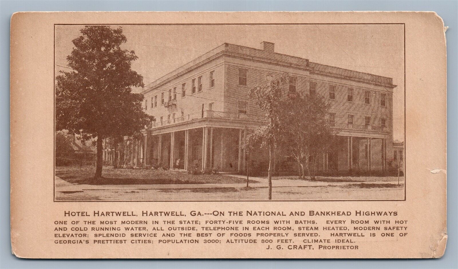 HARTWELL GA HOTEL ADVERTISING ANTIQUE POSTCARD