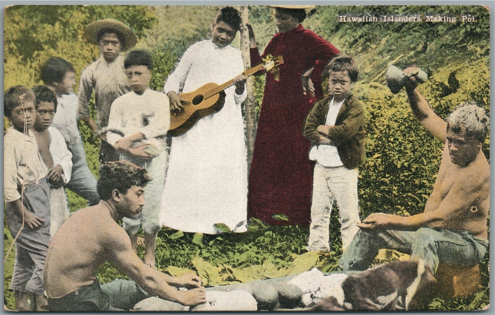 HAWAIIAN ISLANDERS MAKING POI ANTIQUE POSTCARD HI