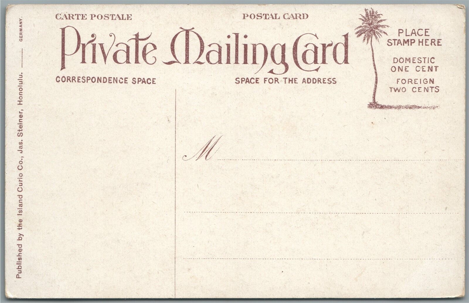 HAWAIIAN ISLANDS RICE FIELD PRIVATE MAIL ANTIQUE POSTCARD