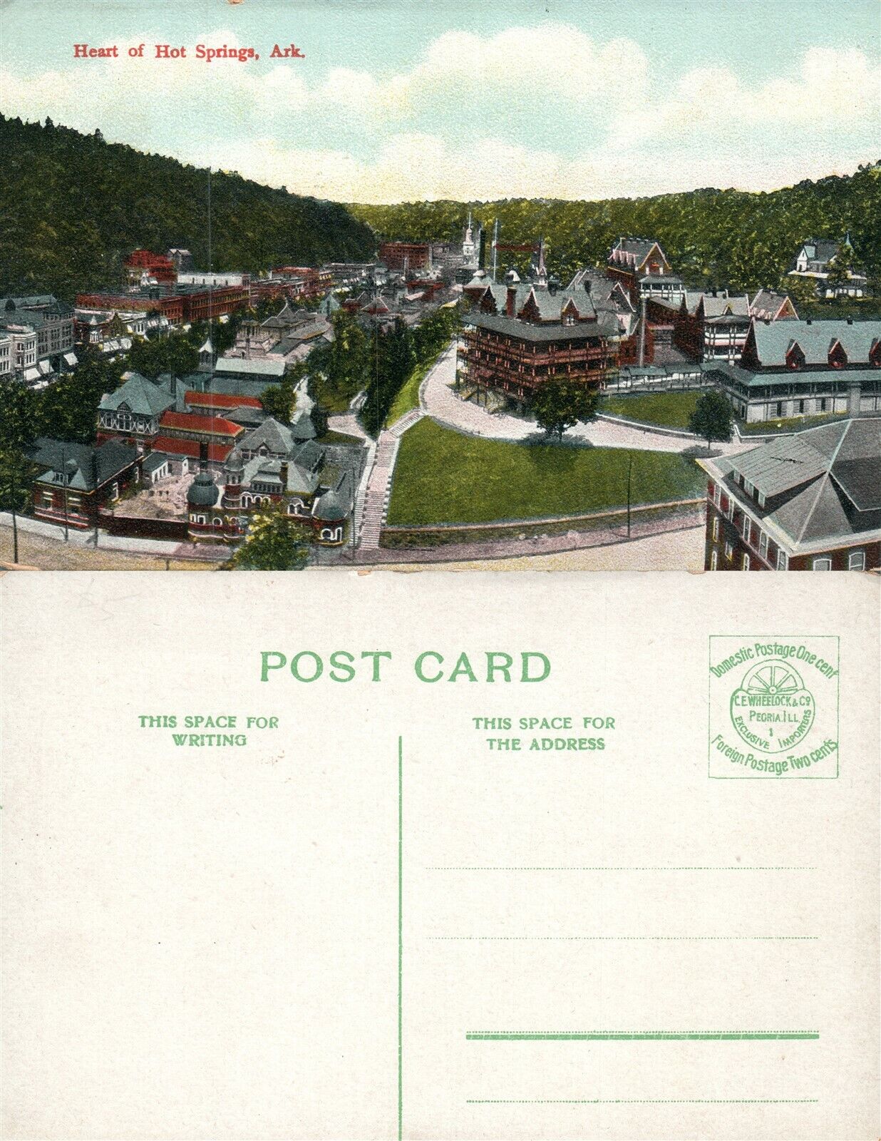 HEART OF HOT SPRINGS ARK. ANTIQUE POSTCARD