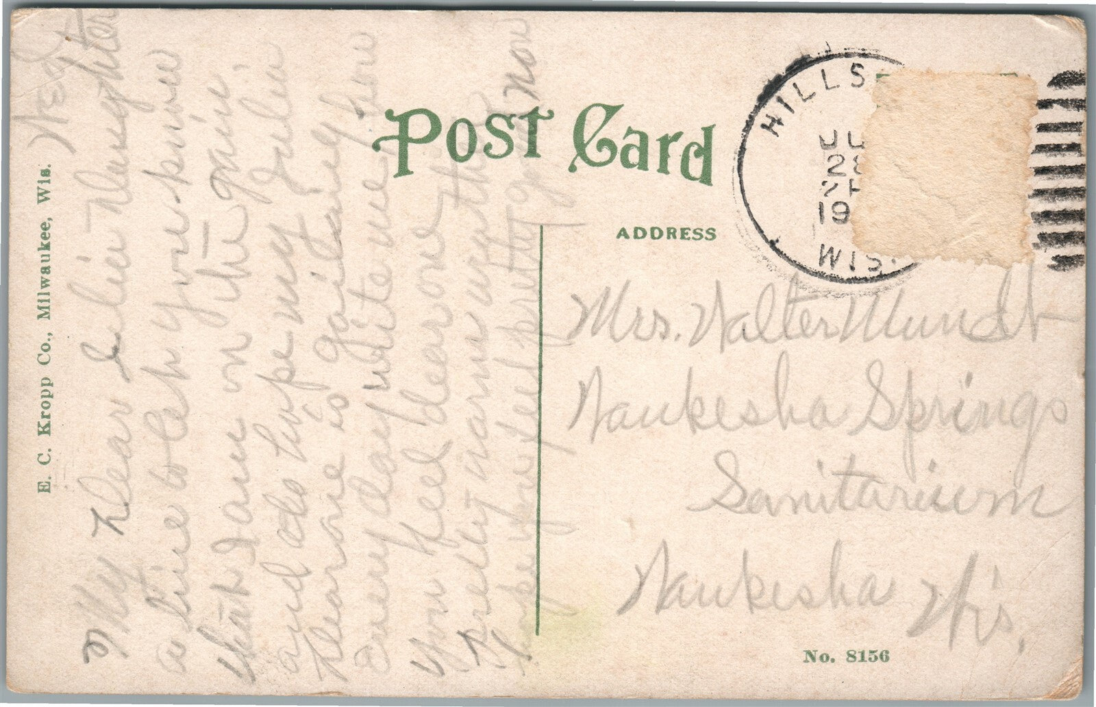 HILLBORO WI HOSPITAL ANTIQUE POSTCARD