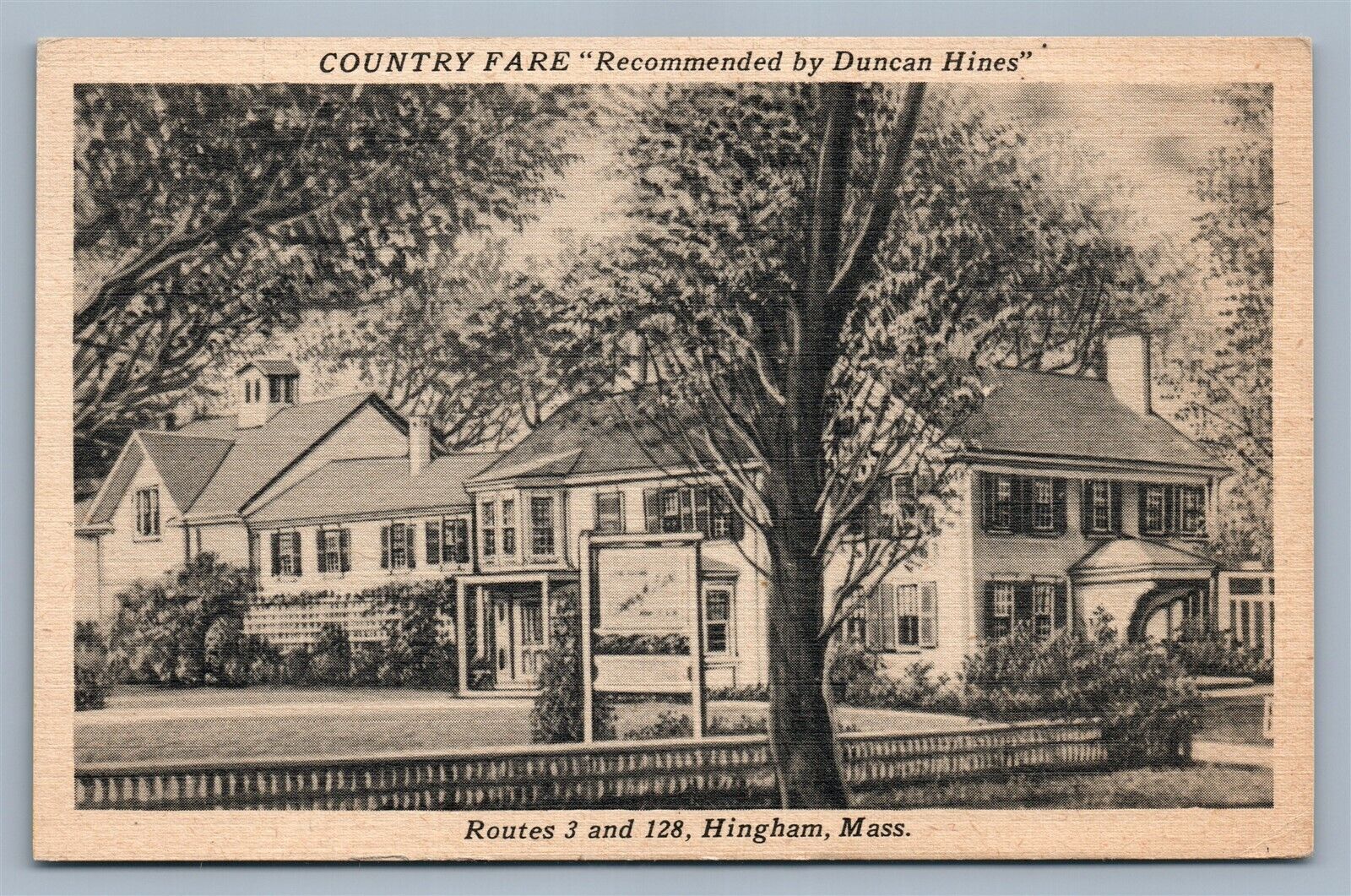 HINGHAM MA COUNTRY FARE RESTAURANT ADVERTISING 1951 VINTAGE POSTCARD
