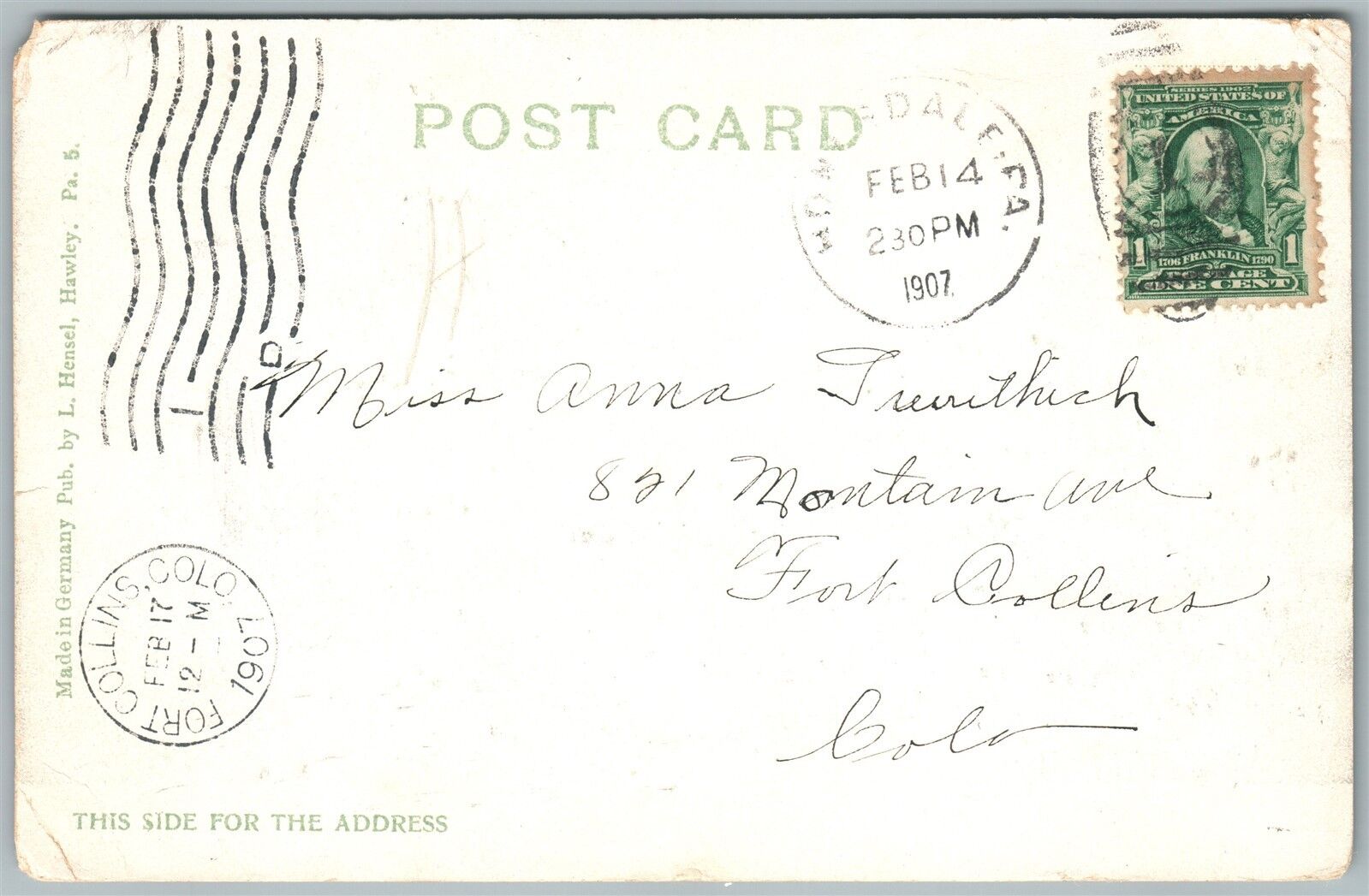 HONESDALE PA CHURCH STREET 1907 ANTIQUE POSTCARD