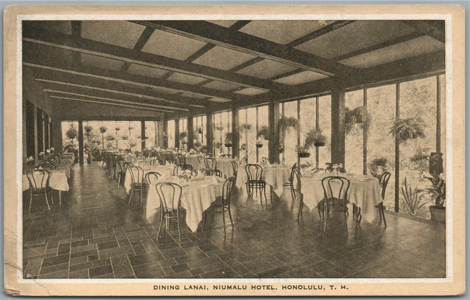 HONOLULU T.H. HAWAII NIUMALU HOTEL DINING LANAI ANTIQUE POSTCARD