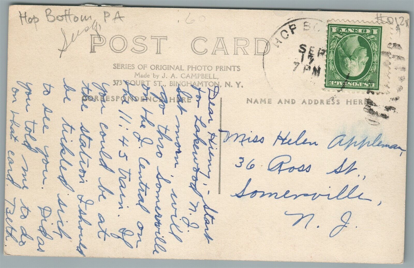 HOP BOTTOM PA MAIN STREET ANTIQUE REAL PHOTO POSTCARD RPPC