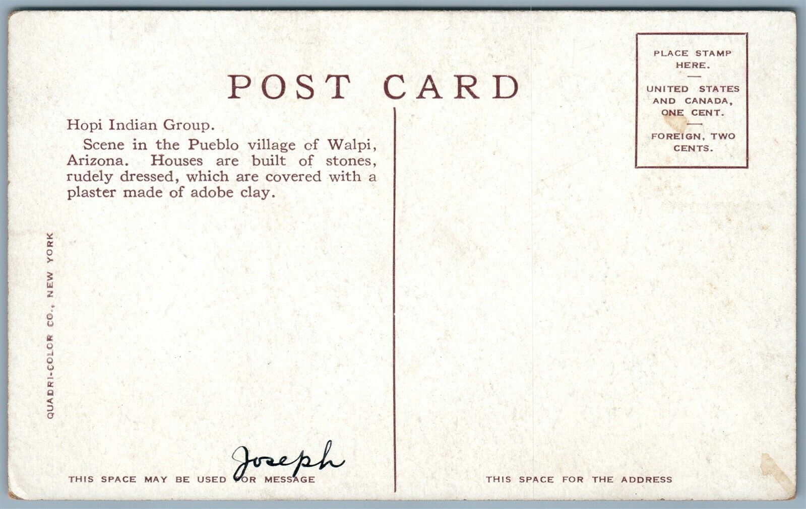 HOPI INDIAN GROUP ANTIQUE POSTCARD