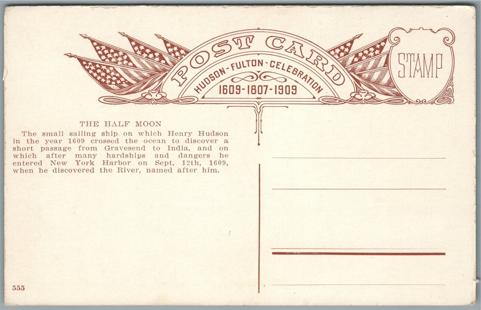 HUDSON FULTON CELEBRATION 1909 ANTIQUE POSTCARD