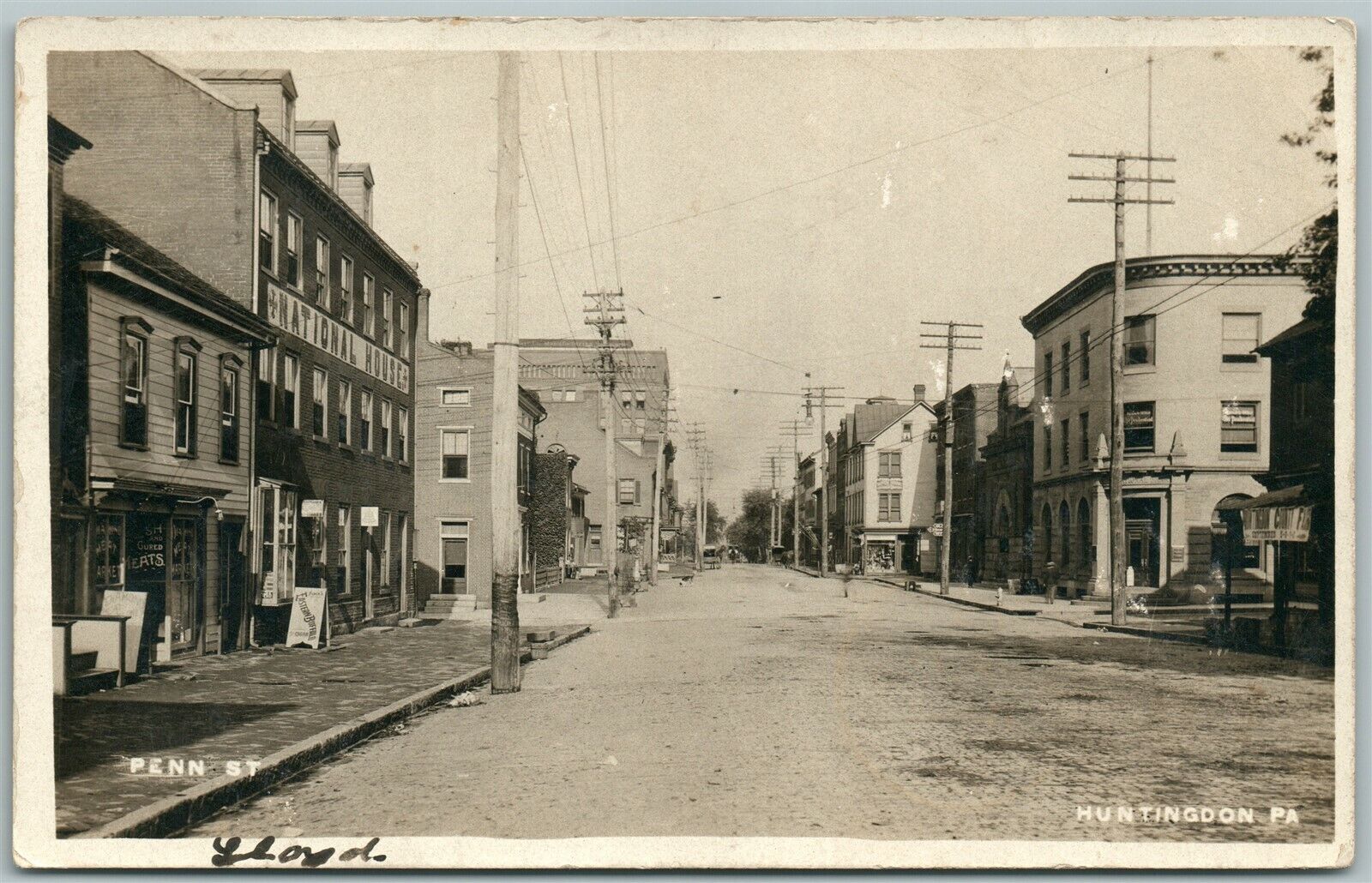 HUNTINGDON PA PENN STREET 1907 ANTIQUE REAL PHOTO POSTCARD RPPC