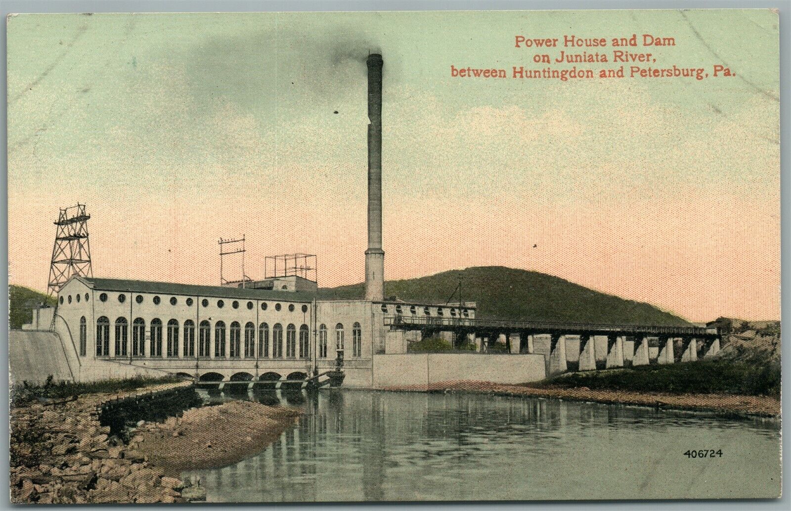 HUNTINGDON & PETERSBURG PA POWER HOUSE & DAM on JUNIATA RIVER ANTIQUE POSTCARD