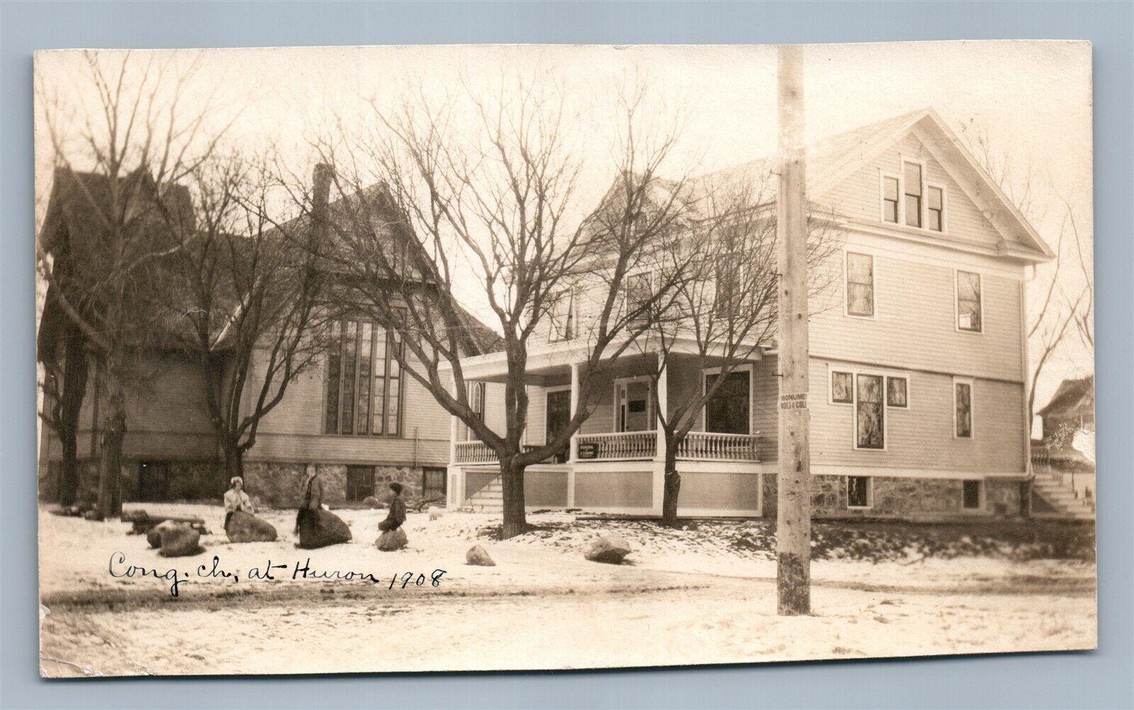 HURON SD CONGREGATIONAL CHURCH 1908 ANTIQUE REAL PHOTO POSTCARD RPPC