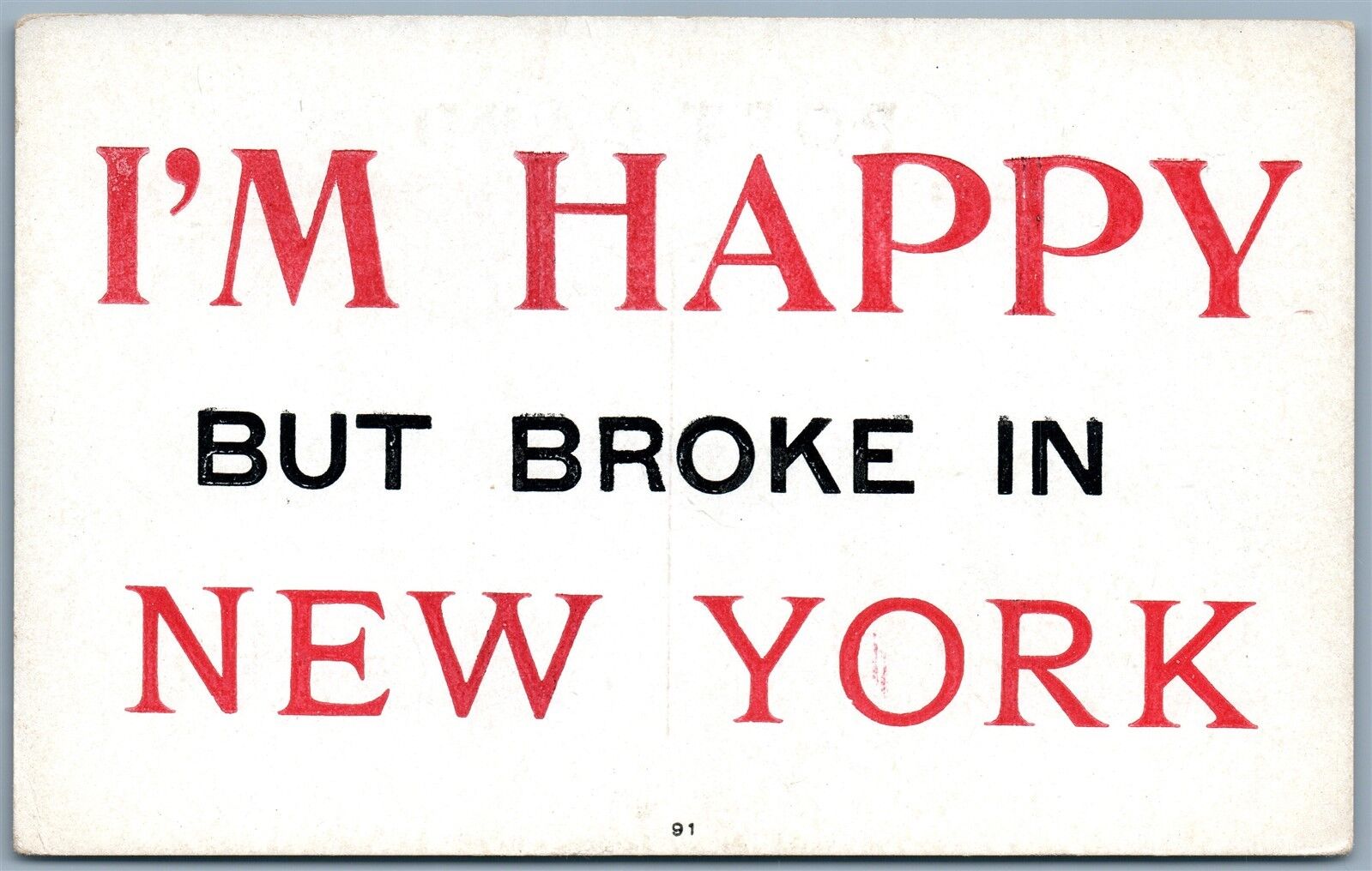 I AM HAPPY BUT BROKE IN NEW YORK ANTIQUE POSTCARD