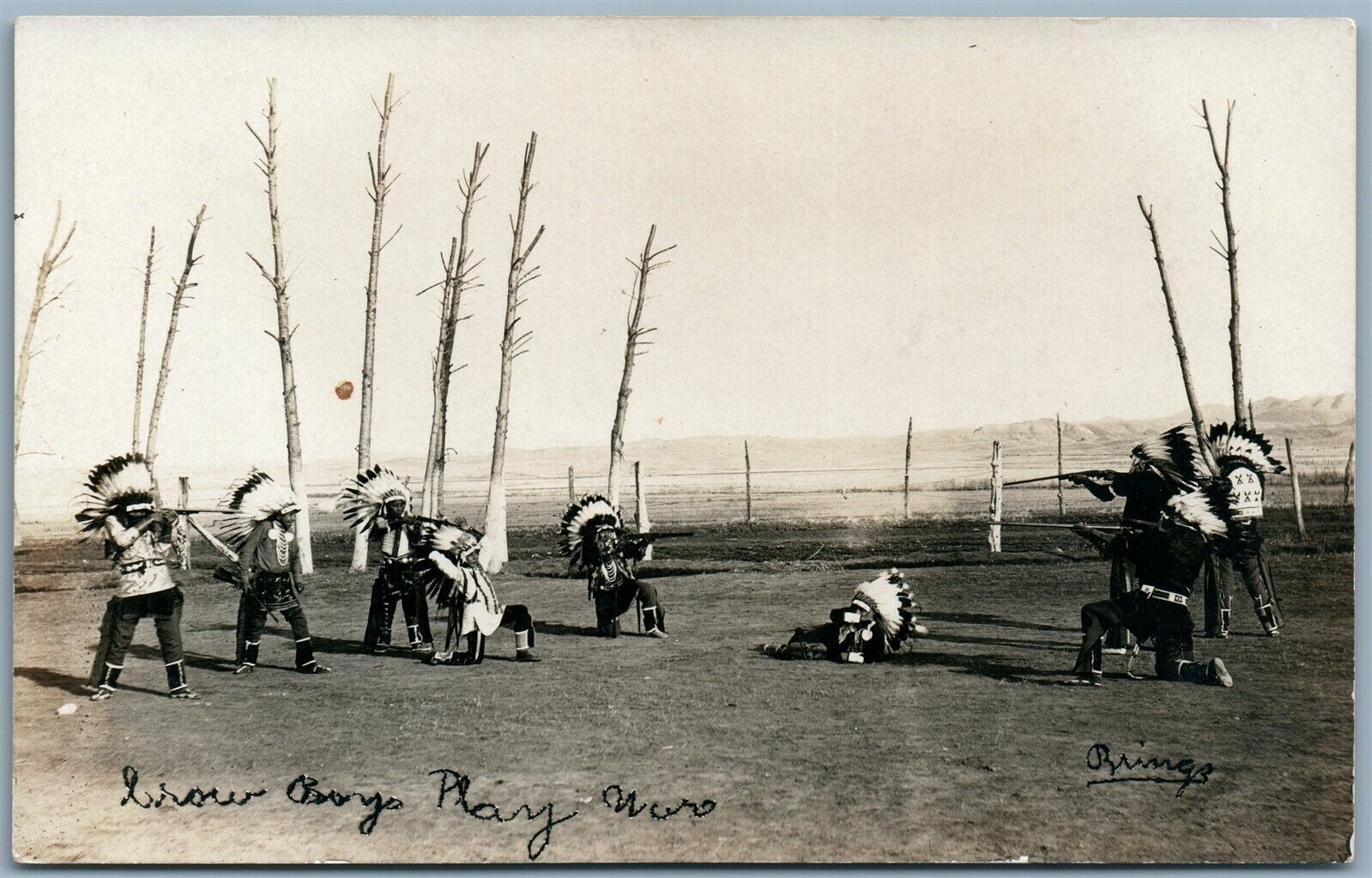 INDIAN BOYS PLAY WAR ANTIQUE REAL PHOTO POSTCARD RPPC