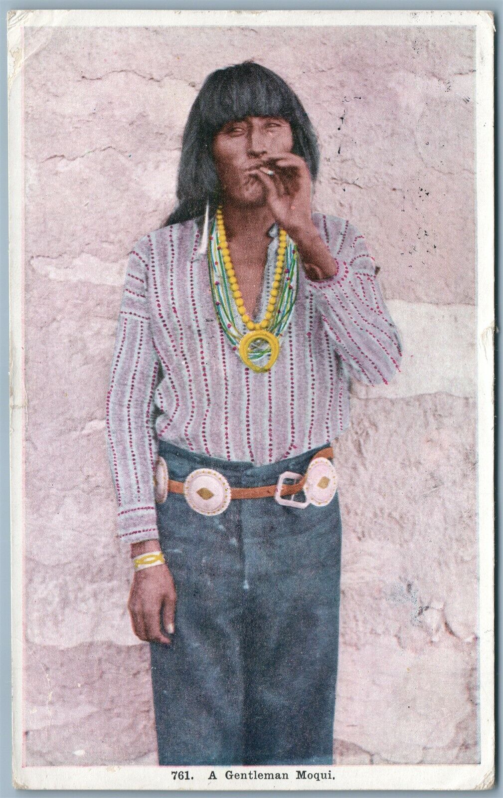 INDIAN GENTLEMAN MOQUI SMOKING CIGARETTE 1908 ANTIQUE POSTCARD