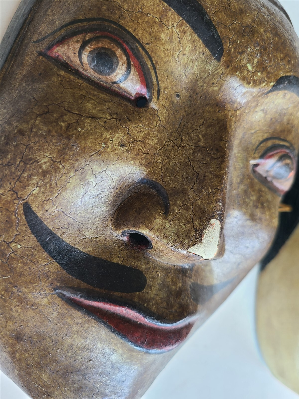 INDIAN VINTAGE PAIR OF WOODEN MASKS - MAN & WOMAN hand carved