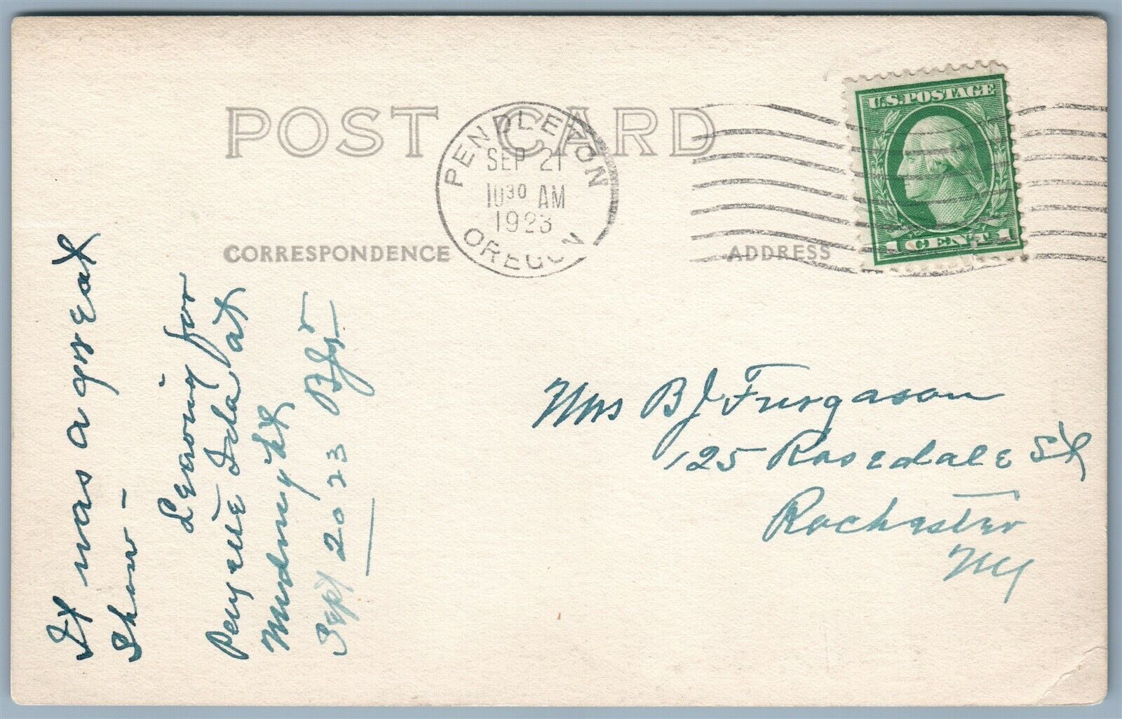 INDIAN WATCHING THE ROUND-UP PENDLETON ORE 1923 VINTAGE REAL PHOTO POSTCARD RPPC